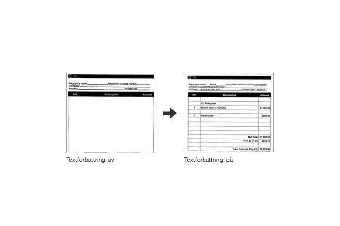 Funktionen för förbättring av text förbättrar textens skärpa när du skannar dokument.