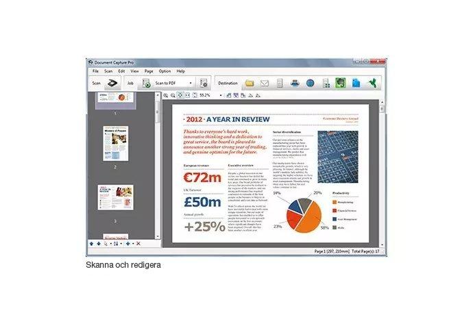 Inbyggd teckenigenkänning gör att skannade dokument kan skapas som sökbara PDF-filer.