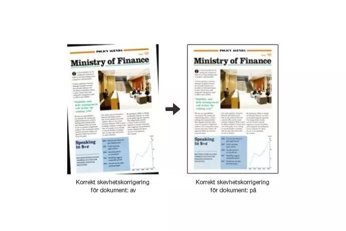 Justera automatiskt skeva bilder och ta automatiskt bort inferensmönster från bilder när du skannar material. Följande dokumenttyper kan användas: